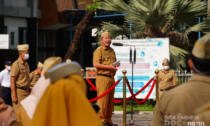 Garut, Mediasakti.id,- Dengan rutinitasnya Pemkab Garut gelar apel pagi gabungan secara terbatas,dalam apel tersebut, Bupati Garut H Rudy Gunawan melantik 16 orang pejabat dengan mengambil sumpah,hal itu Untuk mengisi kekosongan dan rotasi guna penyegaran organisasi, administrator dan fungsional di lingkungan Pemkab Garut.