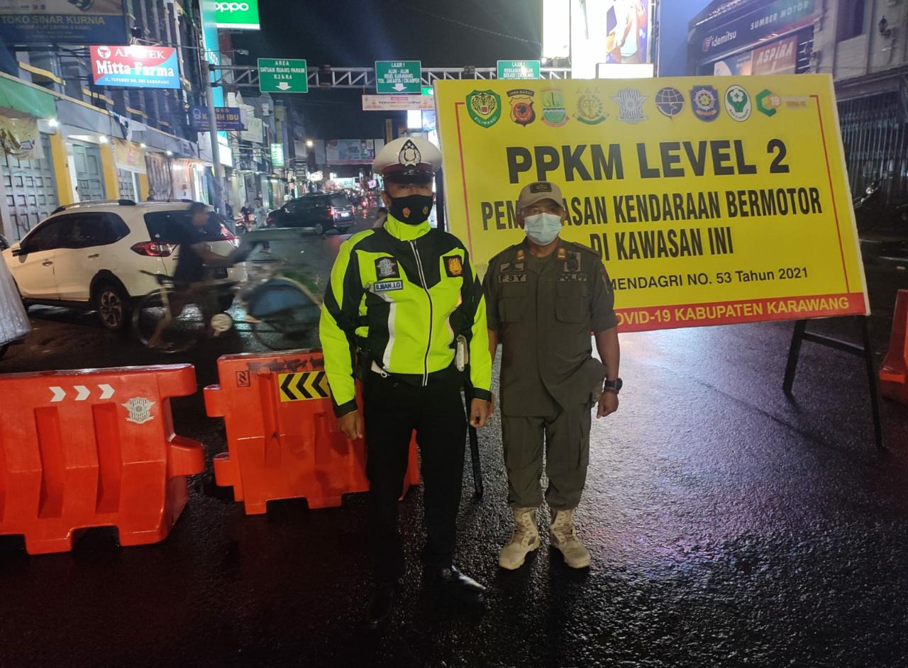 Kasat Lantas Polres Karawang AKP La Ode Habibi Ade Jama menyampaikan bahwa Polres Karawang melaksanakan Kegiatan PPKM Level II dalam rangka pencegahan penyebaran Covid -19 di wilayah Kab. Karawang, konsep kegiatan dilaksanakan dalam bentuk penyekatan dan pembatasan mobilisasi masyarakat dengan dasar Intruksi Mendagri No. 57 Tahun 2021, ujarnya.