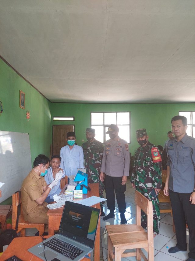 Garut, Mediasakti, – Terus berupaya untuk mencapai target, Kapolsek Singajaya Polres Garut AKP Sahono bersama Danramil 1117 kali ini monitoring pelaksanaan Vaksinasi di MA Nurul Hidayatul Iman yang berada di Kp. Panyingkiran, Desa Mekartani, Kecamatan Singajaya, Kabupaten Garut, Jawa Barat. Senin (8/11/2021).