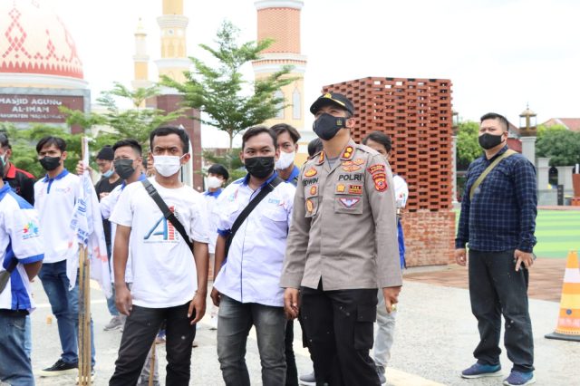Majalengka, Mediasakti.id,- Sebanyak 168 personil Polri dan dibantu juga oleh anggota TNI, Dishub dan Satpol PP Kabupaten Majalengka mengawal aksi unjuk rasa dari Elemen Buruh yang bertempat di depan Pendopo Kabupaten Majalengka, Rabu ( 10/11/2021).