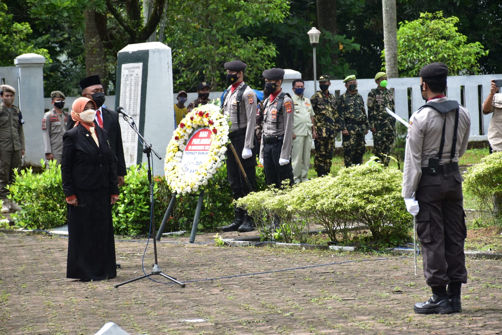 Kota Banjar, Mediasakti.id,- Polres Banjar Polda Jabar, Wali Kota Banjar, Dr. Hj. Ade Uu Sukaesih,M.Si., memimpin upacara Ziarah Nasional dalam rangka Peringatan Hari Pahlawan tahun 2021. Upacara Ziarah Nasional digelar dengan sederhana dan menjalankan protokol kesehatan secara ketat tersebut berlangsung di Taman Makam Pahlawan (TMP) Bahagia Kota Banjar. (10/11/2021)