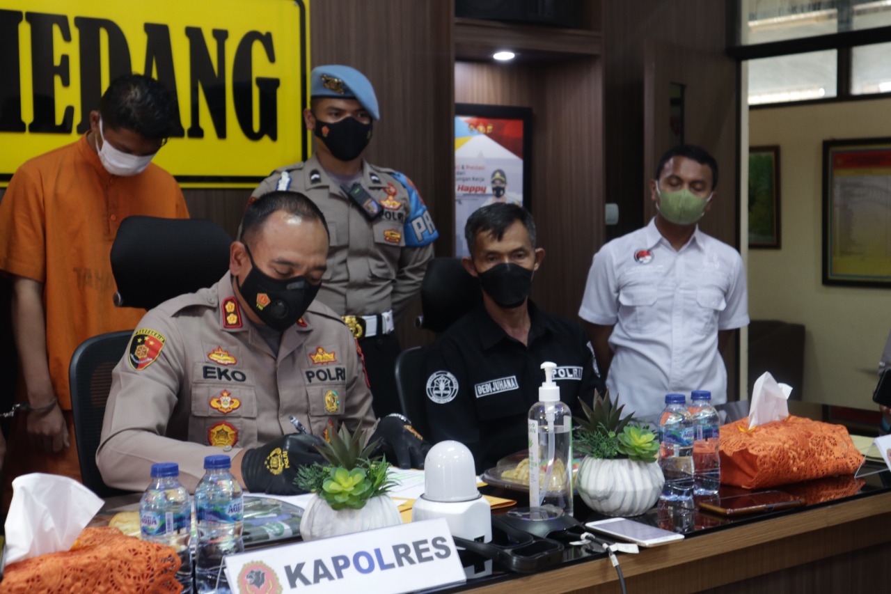 “Kami amankan barang bukti ratusan botor minuman keras, dan juga penjualnya,” kata Kapolres Sumedang AKBP Eko Prasetyo Robbyanto pada saat konferensi pers di aula Polres Sumedang, Kamis (11/11/21)
