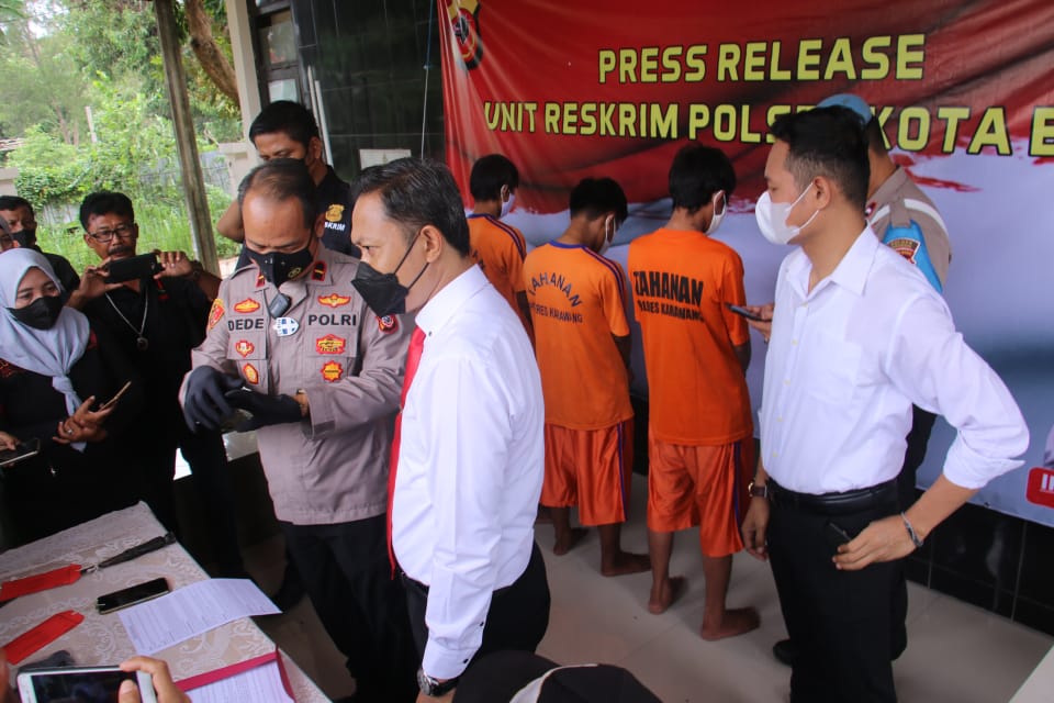 IPDA Dede Komara didampingi IPDA Wihendar Kanit Reskrim Polsek Kota Baru menuturkan, peristiwa terjadi bermula pada hari Sabtu tanggal 06 November 2021, sekitar pukul 03.00 WIB, ketika pelapor Asep Saepudin bersama adiknya yang bernama Soni sedang duduk di depan sebuah warung milik Ma’ Isah, yang berlokasi di Kp. Kalioyod Desa Wancimekar Kecamatan Kota Baru Kabupaten Karawang, tiba-tiba didatangi 2 (orang) laki-laki tak dikenal yang datang menggunakan sepeda motor Honda Vario warna Hitam dan berhenti di depan warung. kemudian salah seorang pelaku langsung merampas Handphone yang sedang dipegang Soni dan membacok Asep Saepudin menggunakan Celurit sebanyak 2 kali mengenai Kepala dan Tangan Asep.