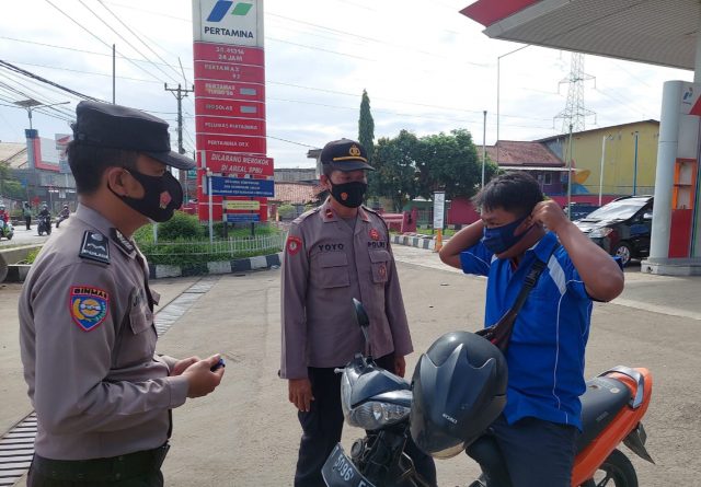 Kapolsek Klari Kompol Ricky Adipratama melalui Panit Lantes Ipda Ade Suryana memberikan himbauan kepada masyarakat dan pengguna jalan agar memperhatikan prokes dan aktif menjaga diri serta taat mengikuti aturan dari pemerintah dengan standar prokes 5M.
