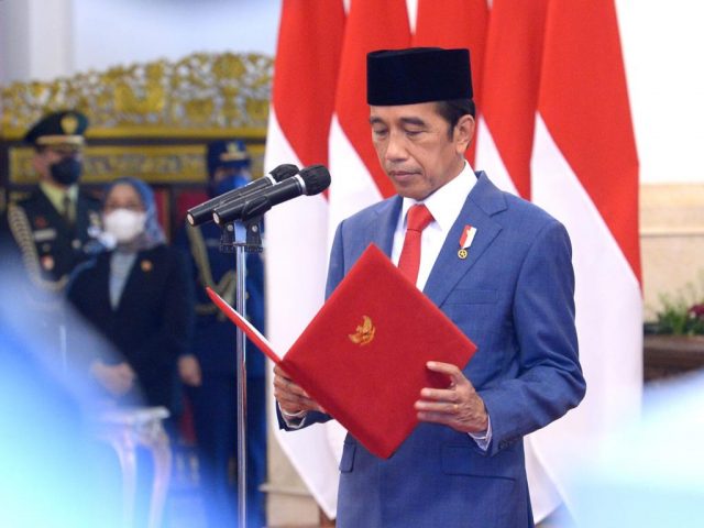 Turut mendampingi Presiden dalam pelantikan tersebut yakni Ibu Negara Iriana Joko Widodo dan Wakil Presiden Ma’ruf Amin beserta Wury Ma’ruf Amin.