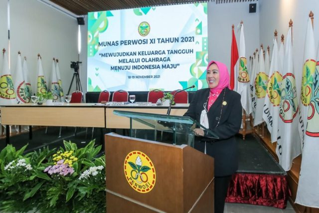 Jakarta, Mediasakti.id,– Persatuan Wanita Olahraga Seluruh Indonesia (PERWOSI), menggelar Musyawarah Nasional (Munas) XI Tahun 2021, dengan tema “Mewujudkan Keluaraga Tangguh Melalui Olahraga Menuju Indonesia Maju”, di akhir periode kepengurusan Ketua Umum Ibu Tri Tito Karnavian. Kamis 18 November 2021.