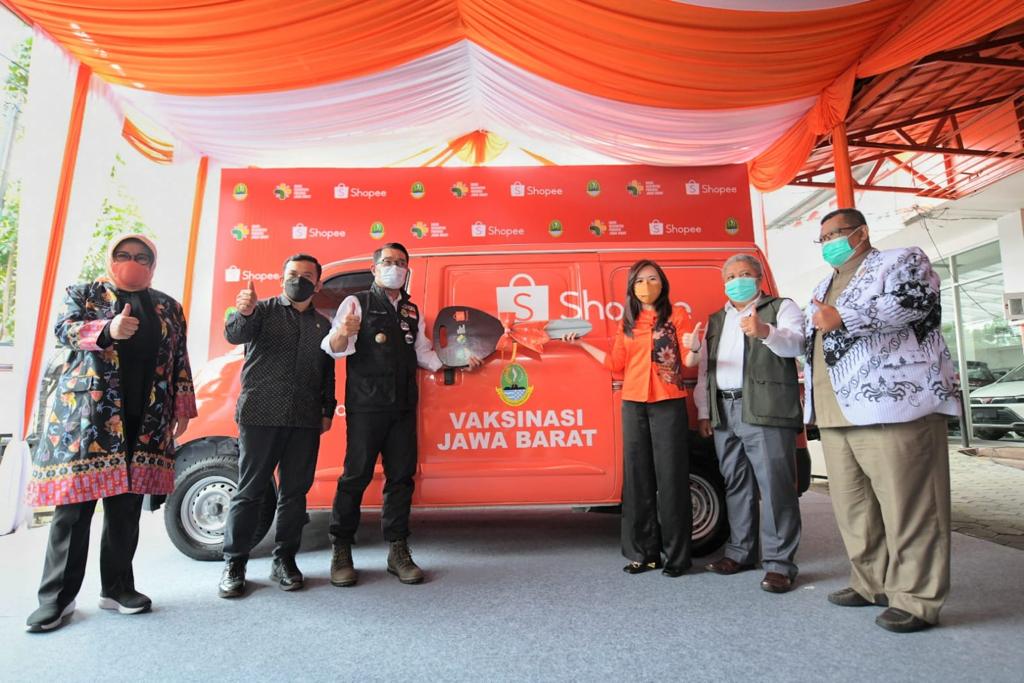 Selain kerja sama pelatihan dan pengembangan bisnis digital, Pemda Provinsi Jawa Barat juga menerima 100 unit kendaraan vaksinasi COVID-19 dari Shopee.