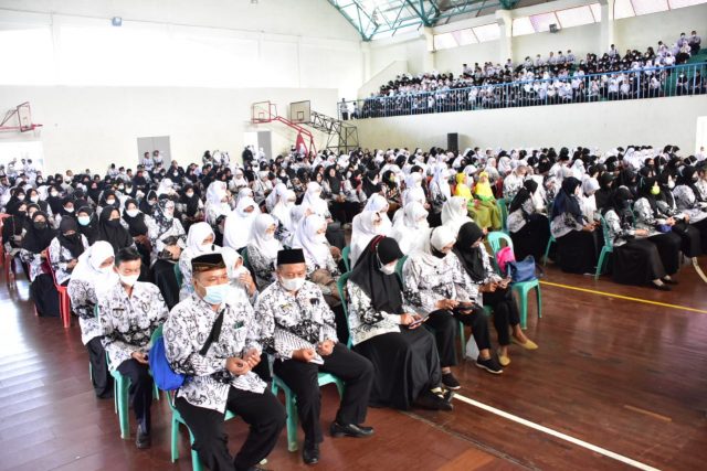 Banjar, Mediasakti.id,– Kegiatan puncak HUT PGRI dan Hari Guru Nasional ( HGN) ke 76 tahun 2021 tingkat Kota Banjar di hadiri ratusan guru dan di laksanakanber di GOR Basket Sport Center Langensari Kota Banjar, Kamis ( 25/11/2021).