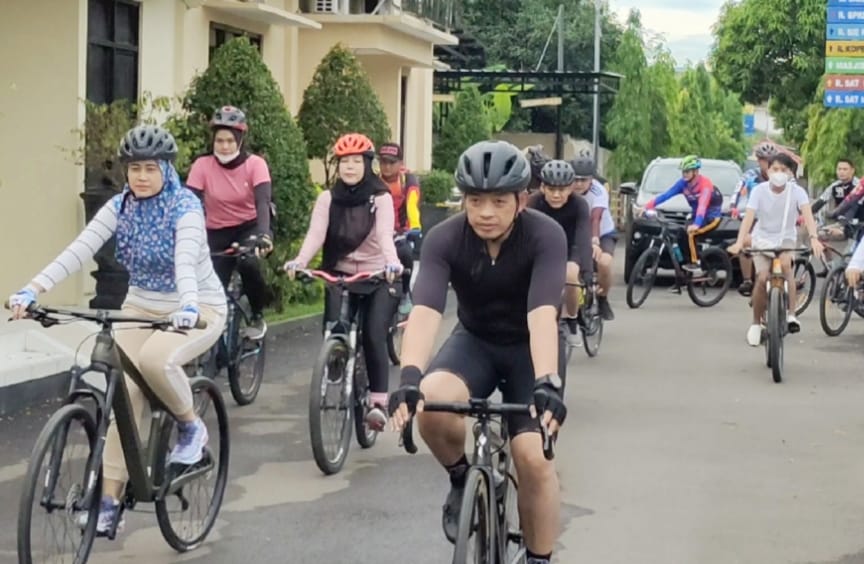 Kapolres Majalengka AKBP Edwin Affandi menyampaikan tujuan melakukan gowes bersama seluruh anggota Polres Majalengka, yang pertama untuk menjaga tubuh tetap sehat.