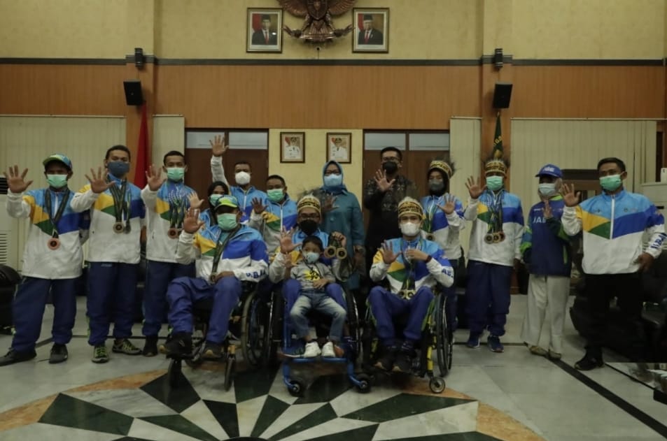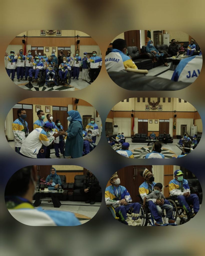 Cibinong-Kabupaten Bogor, Mediasakti.id – Bupati Bogor, Ade Yasin menerima langsung Atlet National Paralympic Committee of Indonesia (NPCI) peraih medali di Pekan Paralimpiade Nasional (Peparnas) Papua 2021, Pendopo Bupati Bogor, Jum’at (26/11/2021). Bupati Bogor mengungkapkan akan memberikan bonus kepada para atlet Peparnas Papua 2021 yang berprestasi peraih medali baik emas, perak dan perunggu pada tahun 2022 mendatang.