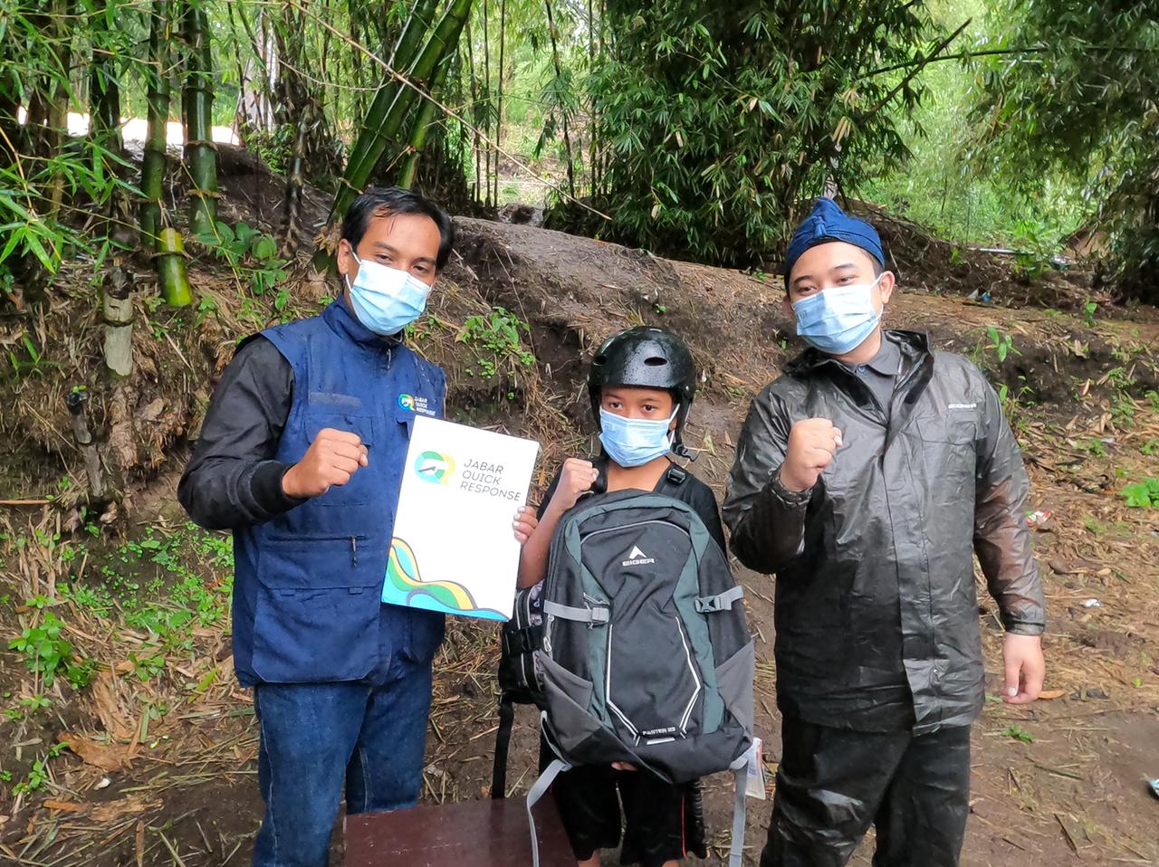 Sambil memeluk tas dari Kang Emil sapaan Ridwan Kamil, anak berusia 8 tahun yang sudah tidak berayah tersebut berkata, “Terima kasih Pak Gubernur.”