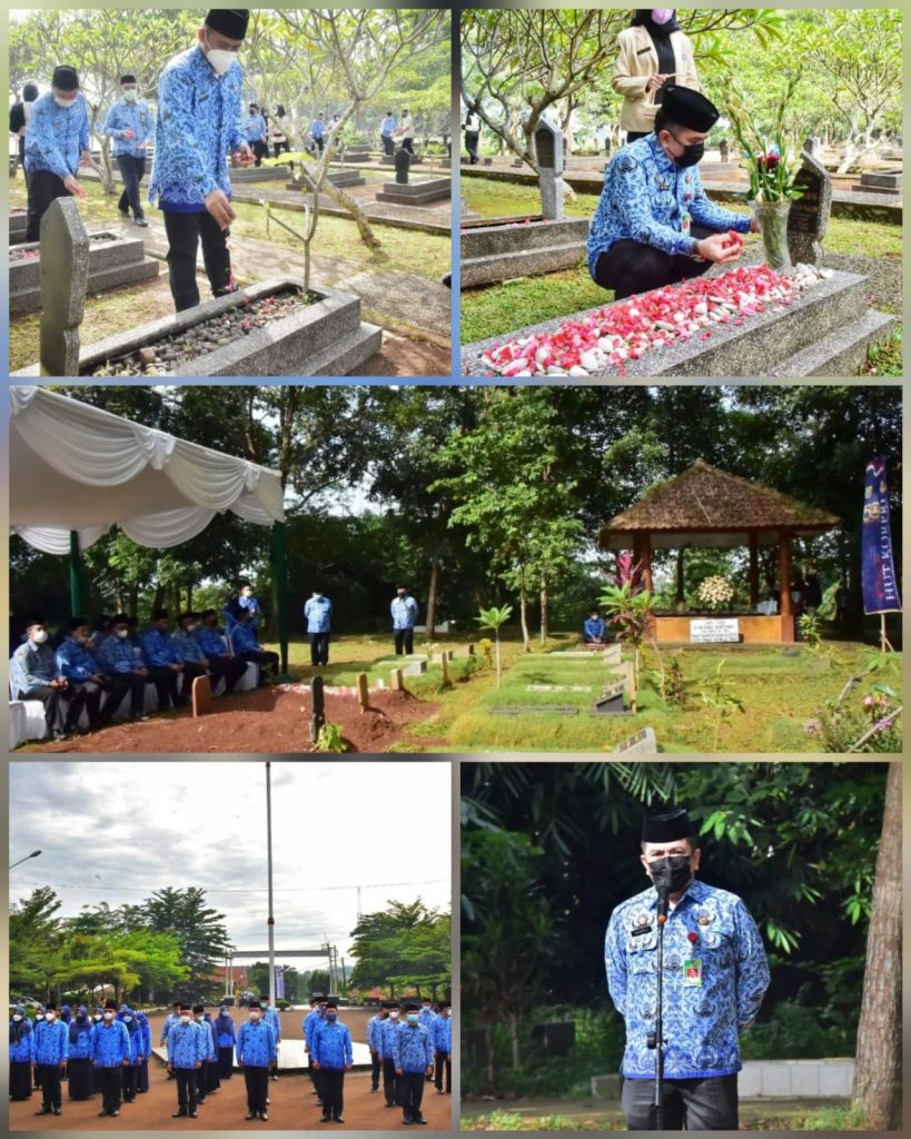 Usai melaksanakan ziarah rombongan ke makam pahlawan, para peserta yang terdiri dari para anggota Korpri Kabupaten Bogor melakukan ziarah ke makam para ASN yang sudah gugur, yang diantaranya akibat Covid-19, di TPU Pondok Rajeg.