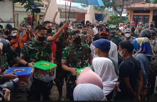 Tak hanya berkunjung, Pangdam III/ Siliwangi yang didampingi Wakil Bupati Garut Helmi budiman dan Kapolres Garut AKBP Whirdanto hadicaksono memberikan langsung bantuan paket Sembako kepada korban bencana dampak Banjir Bandang Garut.