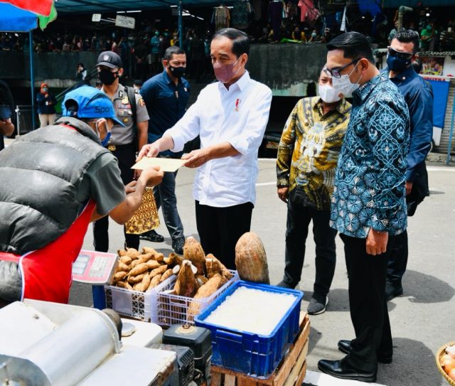 Kota Bandung, Mediasakti.id – Rasa senang menyelimuti perasaan para pedagang Pasar Sederhana, Kota Bandung. Pasalnya, para pedagang pasar ini mendapatkan kesempatan bertemu langsung Presiden Joko Widodo serta Gubernur Jawa Barat Ridwan Kamil secara langsung.