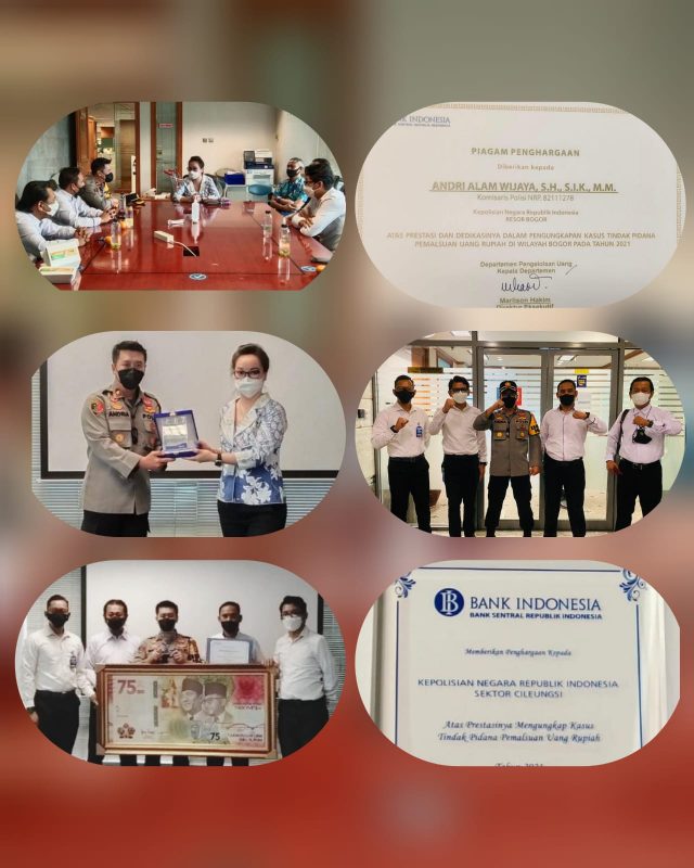 Bertempat di Bank Indonesia Counterfeit Analiysis Center Jakarta, Penghargaan tersebut diberikan secara langsung oleh Perwakilan Bank Indonesia kepada Kapolsek Cileungsi Kompol Andri Alam Wijaya S.H., S.I.K. MM.
