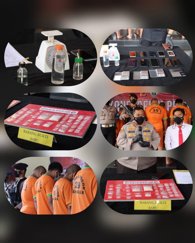 Dalam Konferensi Persnya, Kapolres Bogor AKBP, Dr. Iman Imanuddin S.H., S.I.K., M.H mengungkapkan, bahwa dalam pengungkapan Peredaran Narkotika yang dilakukan dalam kurun waktu 2 pekan ini, kita berhasil mengamankan sebanyak 10 orang tersangka yakni diantaranya ; IE (38), MN (30), JS (29), BS (37), NN (30), DTM (25), LH (30), ES (45), SH (56) dan tersangka PH (27) yang merupakan seorang residivis yang pernah menjalani hukuman di lapas pondok rajeg.