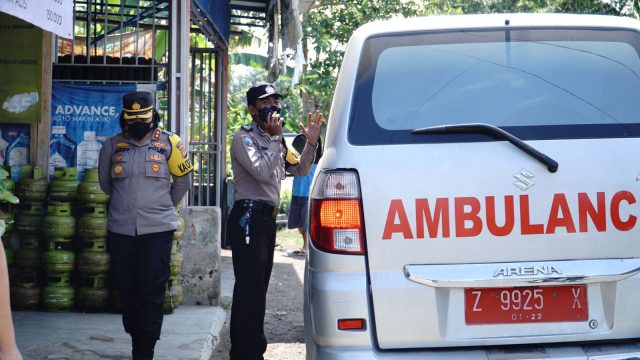 Banjar, Mediasakti.id,– Kapolres Banjar AKBP Ardiyaningsih, S.I.K., M.Si. didampingi Kapolsek Banjar Kompol Sudi Hartono, S.Sos serta Bhabinkamtibmas Kelurahan Mekarsari melaksanakan penjemputan pasien terkonfirmasi positif Covid-19 salah satu warga di Kelurahan Mekarsari Kecamatan Banjar Kota Banjar.