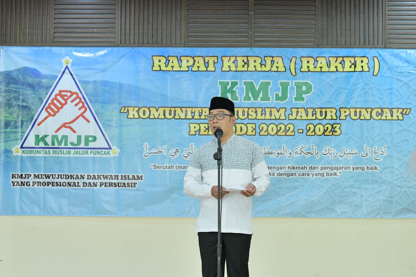 Untuk mewujudkan hal tersebut, Ridwan Kamil menitipkan tiga hal. Pertama adalah harus mengurangi pertengkaran. Oleh karena itu KMJP harus turun langsung ke masyarakat dengan menjadi pembawa perdamaian