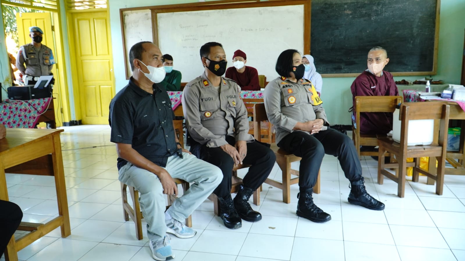 Kapolres Banjar mengikuti kegiatan zoom meeting tersebut di MIS 2 Kota Banjar sekaligus menggelar vaksinasi anak di sekolah tersebut.