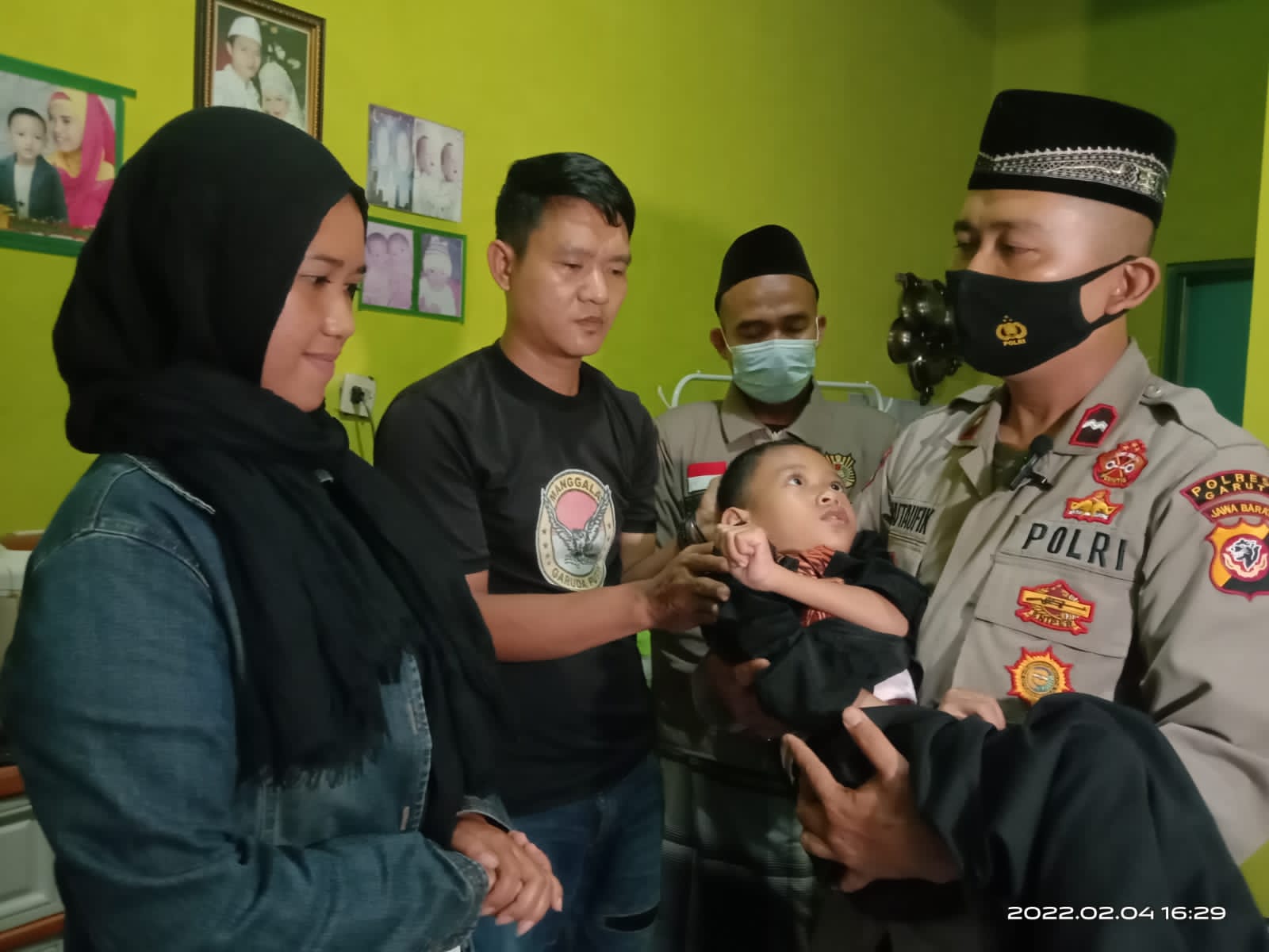 Garut, Mediasakti.id,– Sedih bercampur bahagia tersirat pada Wajah Kedua orang Tua Zamzam Daviansyah (9), Penyandang Disabilitas yang mendapatkan bantuan sosial dari Kapolres Garut berupa Kursi Roda dan uang Tunai Pada Jum’at berkah Polres Garut. Jum’at (4/2/2022).