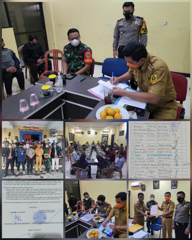 Cileungsi-Kabupaten Bogor, Mediasakti.id –Muspika Cileungsi melaksanakan Rapat koordinasi dalam rangka pembentukan Satgas Pelajar Anti Tawuran dan Anarkis yang bertempat di Aula Polsek Cileungsi, pada 8 February 2022. Dalam kegiatan ini hadir diantaranya sebagai berikut ;