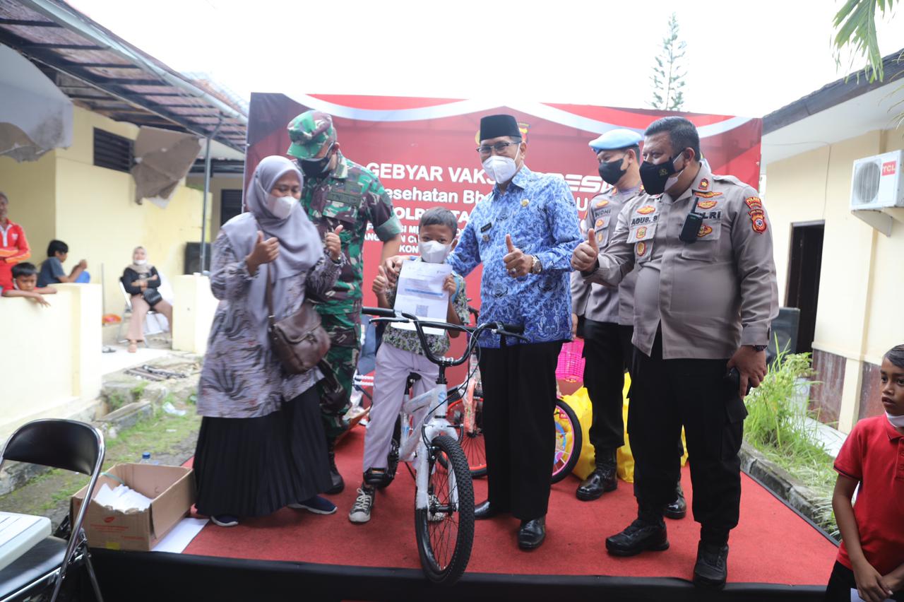 Pada kesempatan yang sama Walikota Tasikmalaya didampingi Forkopimda menyempatkan memberikan bingkisan sembako untuk peserta vaksin Lansia dan memberikan doorprize sepeda kepada salah seorang anak peserta vaksin. (Red@03)