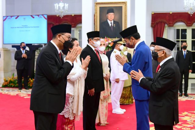 Jakarta, Mediasakti.id,- Presiden Joko Widodo melantik Bambang Susantono dan Dhony Rahajoe sebagai Kepala dan Wakil Kepala Otorita Ibu Kota Nusantara (IKN) di Istana Negara Jakarta, Kamis, 10 Maret 2022. Pelantikan keduanya dilakukan selepas pelantikan Gubernur Sulawesi Selatan dengan tetap menerapkan protokol kesehatan secara ketat dan dihadiri undangan terbatas.