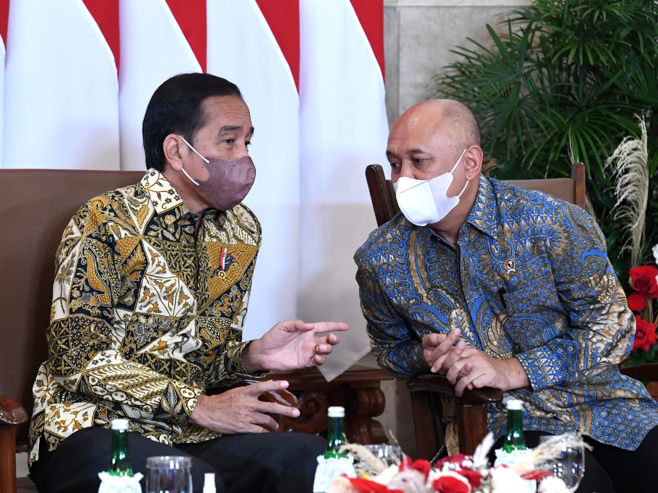 Turut mendampingi Presiden dalam acara tersebut antara lain Menteri Koperasi dan UKM Teten Masduki dan Sekretaris Kabinet Pramono Anung.