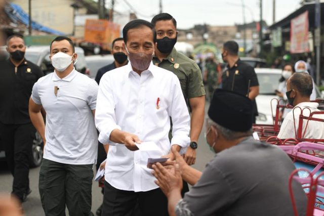 Sebelumnya, selepas asar Presiden Jokowi meninggalkan Gedung Agung, Istana Kepresidenan Yogyakarta untuk menyambangi Pasar Ngasem, Kota Yogyakarta. Di sekitar pasar tersebut, Presiden Jokowi juga membagikan langsung bantuan bagi para penarik becak, pedagang, dan masyarakat sekitar.