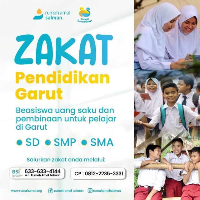 Rumah Amal Salman Garut kembali membuka kesempatan Zakat #PendidikanGarut. Zakat yang Akang Teteh tunaikan akan diperuntukkan sebagai beasiswa uang saku dan pembinaan untuk pelajar (SD, SMP dan SMA) di Garut.