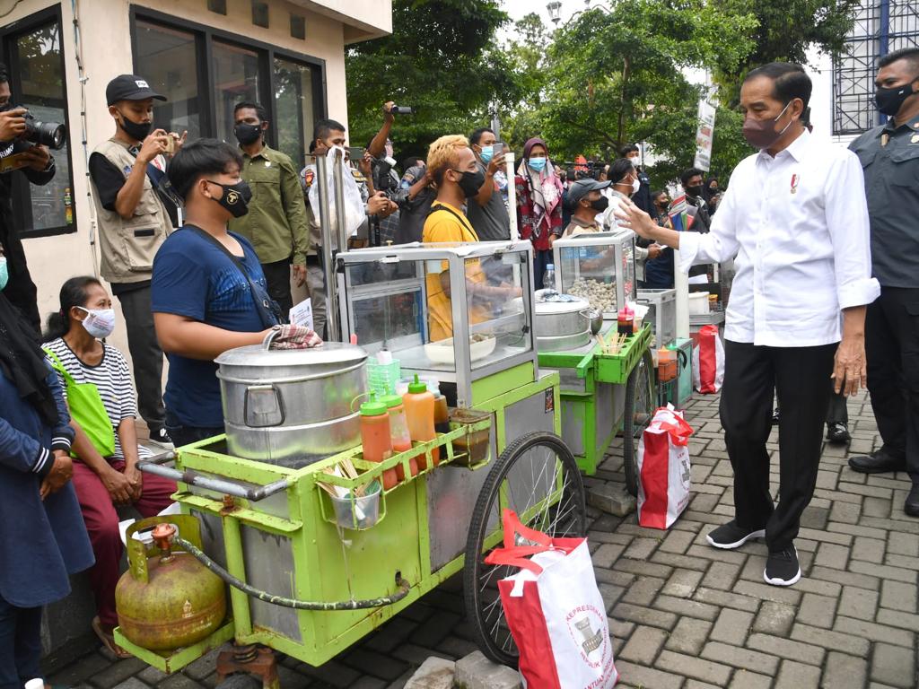 “Harga (sayurannya) Rp10.000, Rp7.000 ya? Kata Presiden begitu, tapi kita tahu (Presiden) cuma bercanda, terus kami dikasih uang,” ucap pedagang sayuran bernama Pur.