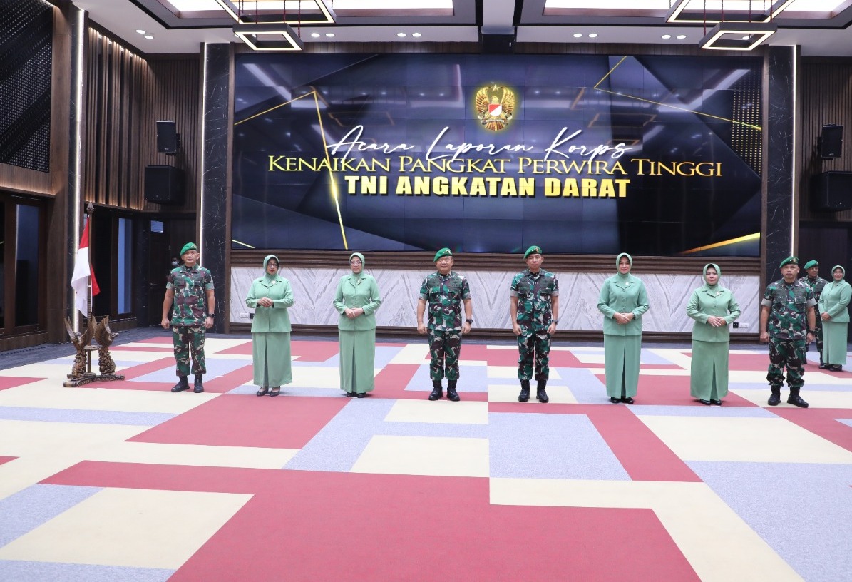 Jakarta, MediaSakti.id,- Sebanyak 24 Perwira Tinggi (Pati) Angkatan Darat, dinaikkan pangkat satu tingkat lebih tinggi dari pangkat semula dalam Acara Laporan Korps Kenaikan Pangkat Perwira Tinggi (KP Pati) TNI AD yang dipimpin Kepala Staf Angkatan Darat (Kasad) Jenderal TNI Dudung Abdurachman, S.E., M.M., di Markas Besar Angkatan Darat, Senin (30/5/2022).