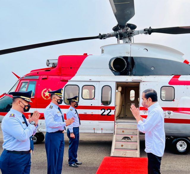 Bogor, MediaSakti.id,- Presiden Joko Widodo melakukan kunjungan kerja ke Provinsi Banten dan Provinsi Jawa Barat pada Jumat, 17 Juni 2022. Presiden dan rombongan lepas landas dengan menggunakan helikopter Super Puma TNI AU dari Pangkalan TNI AU Atang Sendjaja, Kabupaten Bogor, sekitar pukul 07.00 WIB.