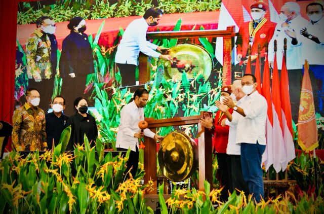 Turut mendampingi Presiden dalam kegiatan tersebut adalah Ketua DPR RI Puan Maharani, Menteri Sekretaris Negara Pratikno, Menteri Investasi/Kepala BKPM Bahlil Lahadalia, Menteri Pemuda dan Olahraga Zainudin Amali, Gubernur Kalimantan Timur Isran Noor, Wali Kota Samarinda Andi Harun, dan Ketua Presidium PMKRI Benidiktus Papa.
