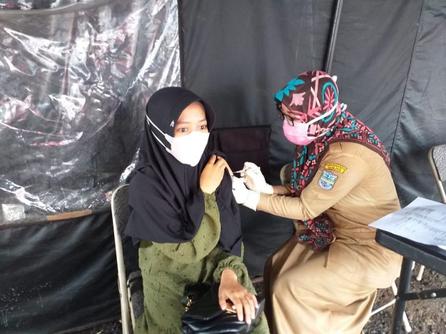 Pelaksanaan vaksin di Makin Kota Banjar, Jalan Gudang RT 02 RW 03 Kelurahan Hegarsari Kecamatan Pataruman Kota Banjar, Senin (27/6/2022).