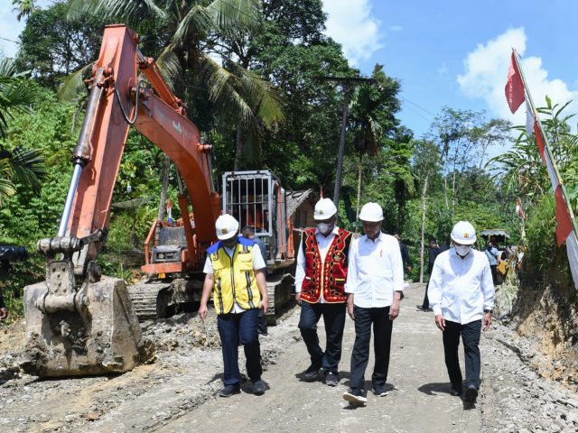 Nias Utara, mediasakti.id,- Presiden Joko Widodo meninjau proyek peningkatan struktur jalan Laehuwa-Ombolata-Tumula-Faekhuna’a di Kabupaten Nias Utara, Provinsi Sumatra Utara, pada Rabu, 6 Juli 2022. Pembangunan infrastruktur jalan tersebut dimaksudkan untuk membangun konektivitas antarwilayah di Pulau Nias.