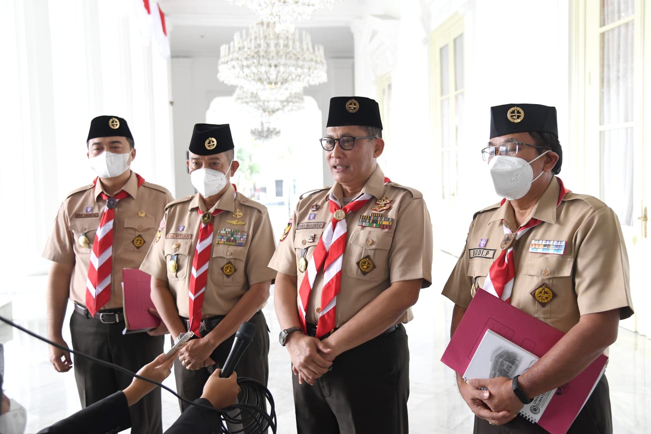 Jakarta, Mediasakti.id,- Presiden Joko Widodo menerima kunjungan perwakilan Kwartir Nasional (Kwarnas) Gerakan Pramuka, pada Jumat, 12 Agustus 2022, di Istana Merdeka, Jakarta. Dalam kunjungan tersebut, Kwarnas Gerakan Pramuka melaporkan terkait persiapan dan rencana Jambore Nasional (Jamnas) XI Tahun 2022 yang akan digelar di Bumi Perkemahan Cibubur, Jakarta, pada tanggal 14 hingga 21 Agustus 2022 mendatang.