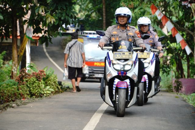 Menyasar wilayah pelosok, Kapolres Banjar beserta rombongan membagikan 10 paket sembako dengan menggunakan sepeda motor.