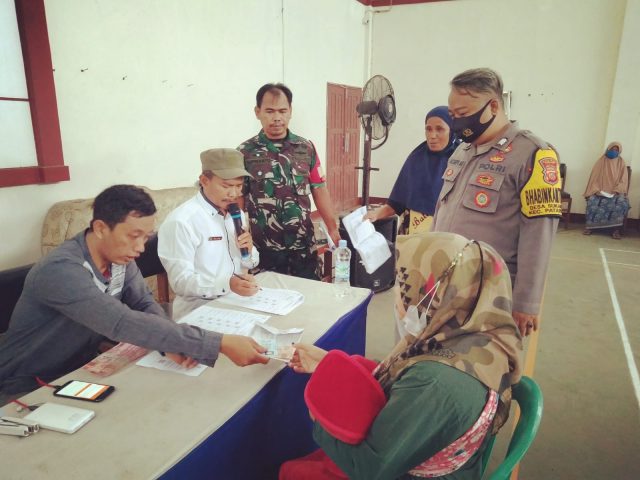 Pembagian didampingi oleh bhabinkamtibmas asep bersama babinsa mendampingi penyerahan sampai selesai.