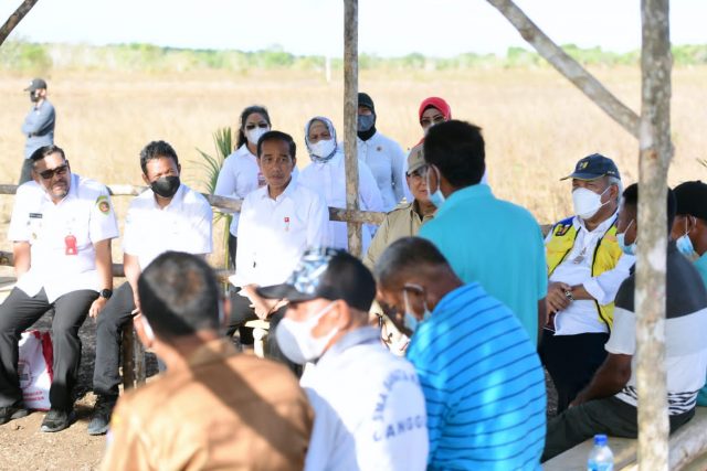Turut mendampingi Presiden dan Ibu Iriana dalam peninjauan tersebut antara lain Menteri Pertahanan Prabowo Subianto, Menteri PUPR Basuki Hadimuljono, dan Menteri Kelautan dan Perikanan Sakti Wahyu Trenggono.