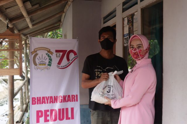 ”Kami pengurus Bhayangkari Cabang Banjar bersama-sama jajaran Polres Banjar ikut serta dalam bakti sosial pembagian sembako. Dan hari ini sebanyak 15 paket sembako kami bagikan untuk warga yang kurang mampu. Semoga yang kami bagikan ini, bermanfaat bagi warga yang membutuhkannya,” ucap Ketua Bhayangkari Cabang Banjar.
