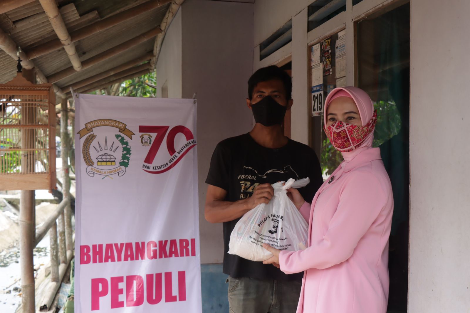 Dalam pembagian bingkisan paket sembako tersebut dihadiri Kapolres Banjar, Ketua Bhayangkari Cabang Banjar, Kanit Regident Satlantas Polres Banjar, KBO SatBinmas Polres Banjar, Bhabinkamtibmas Desa Mekarharja, perwakilan anggotw Polwan Polres Banjar, dan Bina Desa Desa Mekarharja.