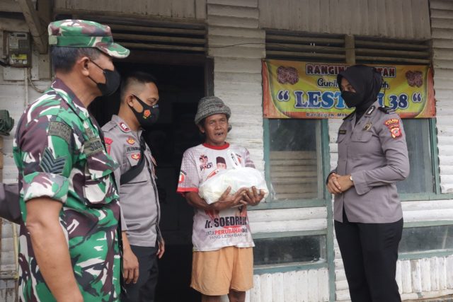 Dalam kesempatan tersebut Kabag Log Polres Banjar menyerahkan batuan berupa paket sembako untuk sedikit meringankan beban beliau.