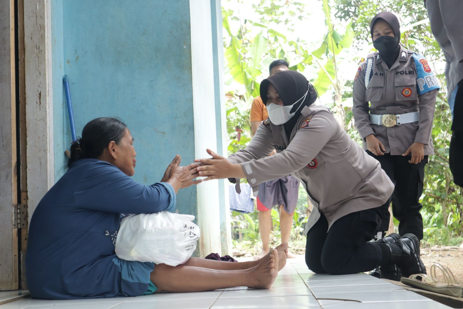 “Ibu lekas sehat ya, kami dari Polri datang ke rumah ibu untuk memberikan sedikit bantuan. Semoga berkenan dan dapat meringankan sedikit beban yang ibu rasakan,” demikian tutur Kasat Intel sambil mengusap wajahnya menahan haru.