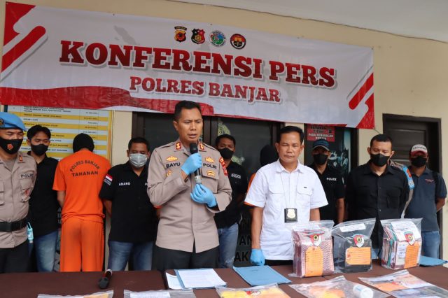 “Tersangka MR selanjutnya diamankan tanpa perlawanan oleh Satuan Narkoba Polres Banjar atas kepemilikan obat hexymer,”ungkap Kapolres Banjar, AKBP Bayu Catur Prabowo, S.H., S.I.K., M.M. pada saat Konfrensi pers tadi siang, Rabu (05/10/2022).
