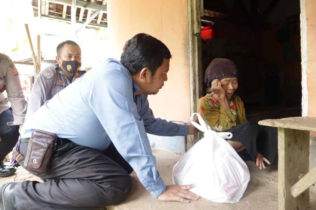 Dalam kunjungan tersebut Kasat Intel memberikan bantuan berupa paket sembako untuk Ibu Aminah.