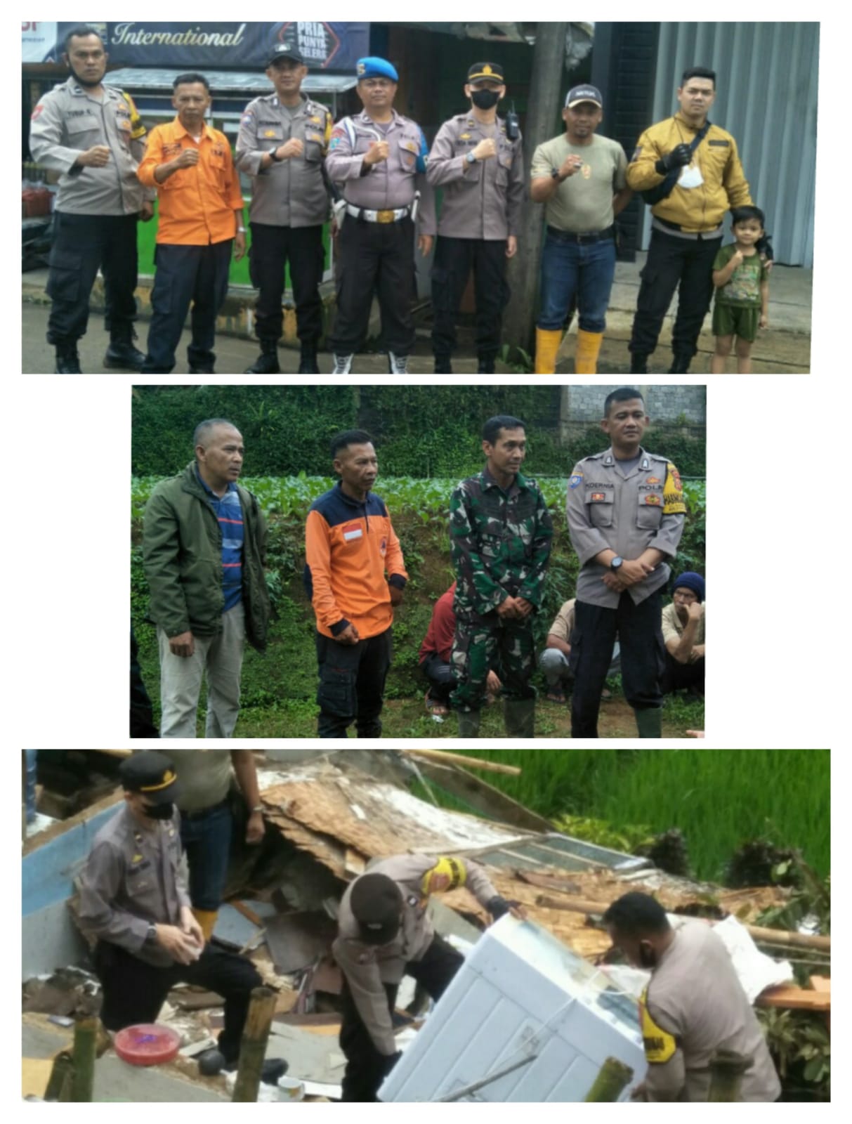 Sehari setelah terjadinya bencana longsor, Jajaran Polsek Kadudampit yang dipimpin oleh Kanit Sabhara Polsek Kadudampit Ipda Dede Iwan kembali meninjau lokasi bencana sekaligus memberikan bantuan berupa sembako untuk keluarga korban,
