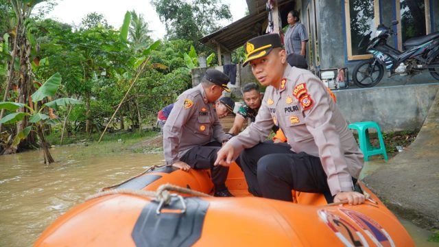 Dengan didampingi oleh Waka Polres Banjar Kompol Tommy Widodo A.,S.H.,M.Si. serta Personel Sat Samapta dan Personel Polsek Pataruman, Bhabinkamtibmas dan Babinsa Desa Batulawang serta Kalak BPBD bersama-sama dengan masyarakat membantu evakuasi warga dengan menggunakan perahu karet dinas milik Sat Samapta Polres Banjar.