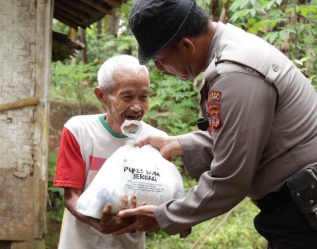 Dalam kunjungan tersebut Kasat Samapta memberikan bantuan berupa paket sembako untuk Abah Radi untuk sedikit membantu meringankan beban hidup beliau.