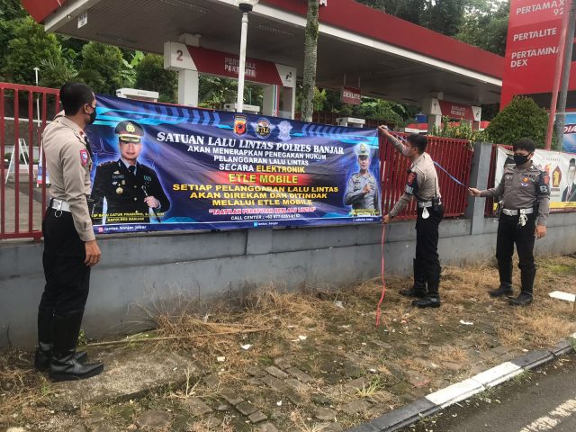 Pemasangan banner sosialisasi tersebut dilakukan menjelang diberlakukan penerapan penegakan hukum pelanggaran lalu lintas secara elektronik (ETLE) atau tilang elektronik di wilayah Polres Banjar.